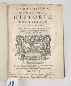 N° 18·[Savoie] VANDERBURCH (Lambert) : Sabaudorum ducum principumq. Historiae gentilitiae libri duo. Ex …
