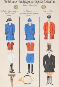 N° 810·(CHASSE). Tenue d'un équipage de chasse à courre - Rallye-Poitou. 1 feuillet sur papier fort (27 …