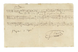 N° 59·VERDI Giuseppe, Citazione musicale da Aida autografa e firmata. — Datata 8 aprile [1873].