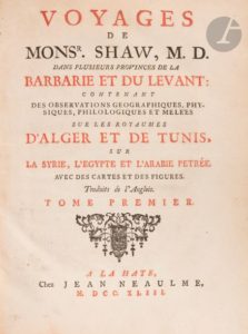 N° 38 .·SHAW (Thomas). Voyages… dans plusieurs provinces de la Barbarie et du Levant : contenant des …