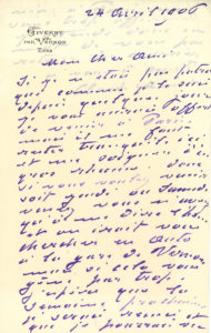 N° 20·Claude MONET (1840-1926). L.A.S., Giverny 24 avril 1906, à Gustave Geffroy ; 1 page et quart …