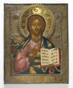 N° 10·Icône « Christ Pantocrator » Russie, région de Yaroslavl, XIXe siècle Tempera sur bois, oklad …