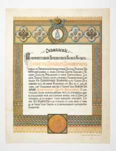 N° 127·ANNONCE DU COURONNEMENT de l’empereur Alexandre III. Chromolithographie, 32,5 х 25,5 cm, A.B.E. …