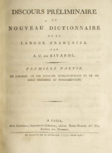 N° 140·RIVAROL (Antoine, Comte de). — Discours préliminaire du Nouveau dictionnaire de la langue …