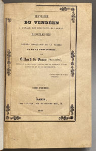 N° 153·VENDÉE & CHOUANS. - BILLARD DE VEAUX (Alexandre). — Bréviaire du Vendéen. — À l'usage des …