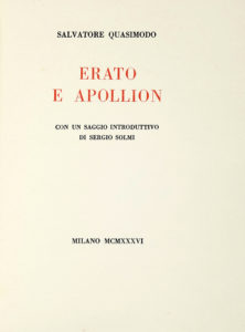 N° 184·QUASIMODO Salvatore, Erato e Apollion [...] con un saggio introduttivo di Sergio Solmi.— Milano : …