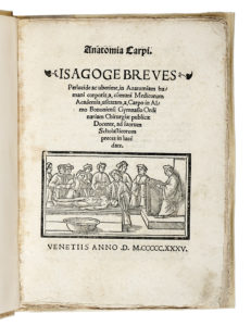 N° 429·BERENGARIO Jacopo, Anatomia Carpi. — Isagoge breves perlucide ac uberime, in anatomiam humani …
