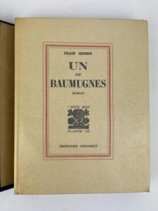 N° 86·Giono Jean Un des Baumugnes. Paris, Bernard Grasset, 1929. 1 volume in-4° broché sous chemise et …