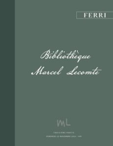 FERRI & Associés. Paris. BIBLIOTHÈQUE MARCEL LECOMTE "TROISIEME PARTIE". LIVRES ANCIENS et MODERNES.. VENDREDI 22 NOVEMBRE 2024 à 14h00 Drouot salle 7. VOUS pouvez enchérir - En live, sur la plateformes Drouot Live (+1,8 % HT) Avec inscription. Ou Par ordres d’achat ou enchères téléphoniques en envoyant directement votre demande d’ordre d’achat ou votre réservation de ligne à l’étude. Tel : +33 (0) 1 42 33 11 24 - E-Mail : ferri.cp@ferri-drouot.com - Pour enchérir le jour de la vente, n'oubliez pas de vous inscrire avant le VENDREDI 22 à 11h00