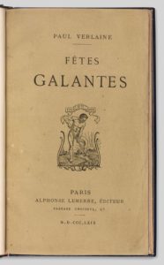 N° 144·VERLAINE (Paul). Fêtes galantes. Paris, Alphonse Lemerre, 1869. Petit in-12, maroquin bleu à …