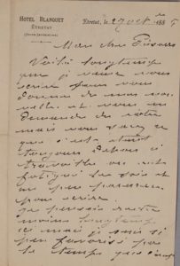 N° 43·Claude MONET (1840-1926). L.A.S., Étretat 27 oct. 1885, à Camille Pissarro ; 3 pages in-8°, à …