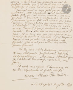 N° 1·Henri ALAIN-FOURNIER (1886-1914). — L.A.S., La Chapelle d’Angillon 23 août 1913, [à Yvonne …