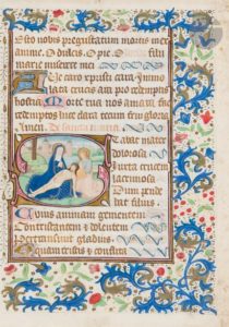 N° 9·[ENLUMINURE]. Feuillet extrait d’un livre d’heures Initiale S historiée, Pietà (Vierge et le …
