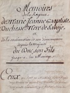 N° 20·MANUSCRIT — Memoires de la régence de Marie Jeanne Baptiste duchesse mere de Savoye et de la …
