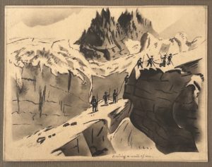 N° 40·AULDJO (John) (attribué à) — Six dessins relatant l'ascension du Mont-Blanc : Scaling a wall of …