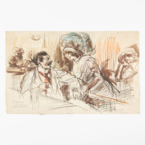 N° 1064·EUGEEN VAN MIEGHEM (1875-1930) Café Hulstkamp Anvers, 1912. Crayon de couleur et aquarelle. Signé …