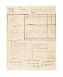 N° 244·[ISLE DE France] — Grand Tableau des recettes et dépenses en grain dans les magasins du Roy à …