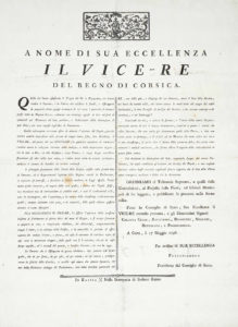 N° 257·[CORSE] — “A Nome di Sua Eccellenza il Vice-Re del regio di Corsica”, Corte 17 Maggio 1796 …