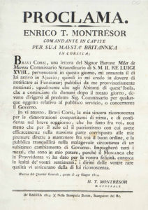 N° 261·[CORSE] — “Proclamation Enrico T. MONTRESOR Commandante in capite per sua Maesta Britannica in …