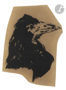 N° 33·[Édouard MANET – MALLARMÉ]. — Le Corbeau, 1875. — Célèbre tête du Corbeau, découpée …