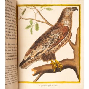 LIVRES et MANUSCRITS – ESTAMPES. Belle collection d’Histoire naturelle réunie par un amateur dont l’édition originale de la célèbre Histoire naturelle des oiseaux de Buffon, 1770-1783 en 10 volumes comportant de superbes planches ornithologiques hors texte gravées sur cuivre d’après des dessins de François-Nicolas Martinet et aquarellées à la main (lot 12 - 20 000/25 000€).