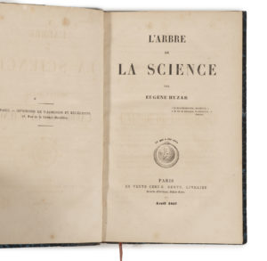 N° 137·HUZAR (Eugène). L'Arbre de la science. Paris, E. Dentu, avril 1857. In-8°, demi-veau gris, dos à …