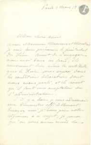 N° 4·Auguste BARTHOLDI. L.A.S., 1er mars 1880, à un cher ami ; 1 page et demie in-8 à son …