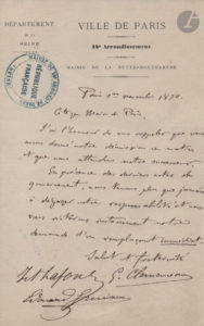 N° 365·Georges CLEMENCEAU (1841-1929). L.A.S., Paris 1er novembre 1870, au « Citoyen Maire de …