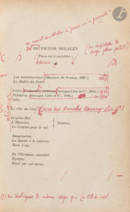 N° 108·SEGALEN (Victor). Épreuves corrigées de son livre Peintures. Paris : Georges Crès et Cie, 1916. …
