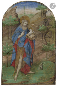 N° 12·[ENLUMINURE]. Saint Jean-Baptiste Enluminure extraite d’un livre d’heures, illustrant les …