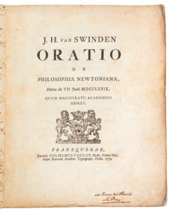 N° 132·NEWTON. — VAN SWINDEN (Jan Hendrick). Oratio de philosophianewtoniana, habita die VII Junii 1779, …