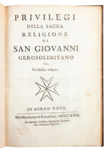 N° 139·ORDRE DE MALTE. — Privilegidella Sacra Religione di San GiovaniGerosolimitano con un indice …