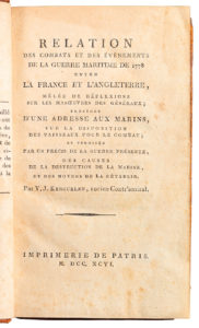 N° 74·[KERGUELEN (Yves-Joseph)]. Relation des combats et des évènements de la guerre maritime de 1778 …