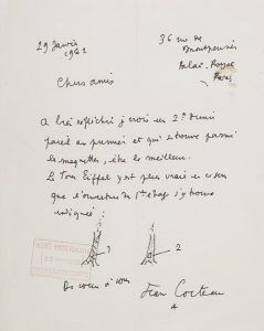N° 174·Jean COCTEAU. L.A.S. avec 2 dessins, Paris 29 janvier 1962, à des amis publicitaires de l'Agence …