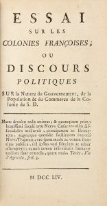 N° 211·* ANONYME [SAINTARD (Pierre-Louis)] Essai sur les colonies françoises ; ou discours politiques …