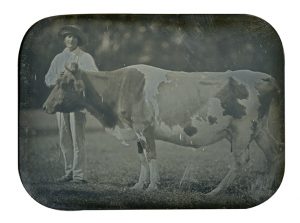 N° 14·Photographe non identifié Vache et son vacher Daguerréotype quart de plaque Vers 1 848 A vue 7 x …