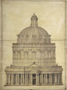N° 18·École Italienne du xviiième siècle Trois coupes et élévations pour une église à coupole …