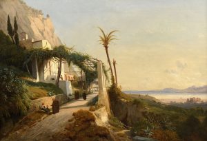 N° 44·Attribué à Louis Auguste Lapito (1803-1874) Paysage de la côte amalfitaine avec des moines Toile …