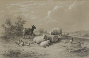 N° 121·Eugène VERBOECKHOVEN (1798 / 99-1881) Scène champêtre aux moutons, 1875 Dessin à la pierre …