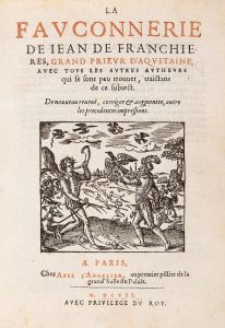 N° 68·Franchieres, Jean de. La Fauconnerie de Jean de Franchieres... Paris, Abel l'Angelier, 1607. 1 vol. …