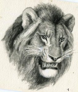 N° 22·Oberthür (Joseph). Tête de lion. Lavis original; env. 19 x 19 cm.