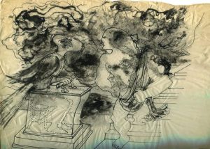 N° 64·Cocteau (Jean). "Tirésias". Dessin original à l'encre et lavis, sur calque, exécuté vers 1928; …