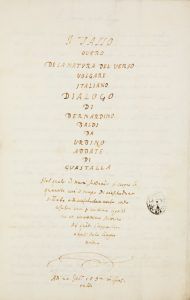 N° 26·Baldi Bernardino, Il Tasso overo de la natura del verso volgare italiano dialogo... Al 20 feb.o …