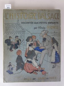 N° 201·HANSI. Histoire d'Alsace raconté aux petits enfants par oncle Hansi. In-folio. Reliure cassée. …