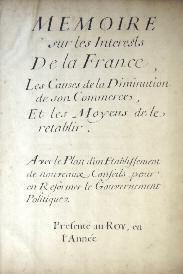 N° 79·[Manuscrit].Mémoire D’etat. Mémoire sur les Interests de la France, les Causes de la Diminution …