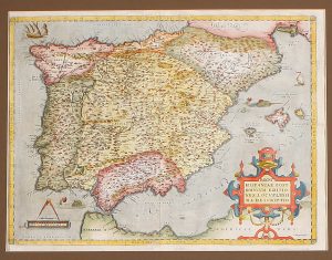 N° 160·1750. (PENINSULA IBERICA). ORTELIUS,. REGNI HISPANIAE POST OMNIUM EDITIO: NES LOCUPLESSIMA …