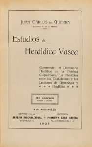 N° 794·1927. (GENEALOGIA-PAIS VASCO). GUERRA, JUAN CARLOS DE: ESTUDIOS DE HERALDICA VASCA. San Sebastián: …