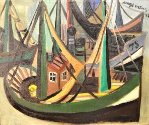 N° 191·CREUZ (Serge). "Les Barques à Nieuport" (1947). Huile sur toile, datée, signée au coin supér. …