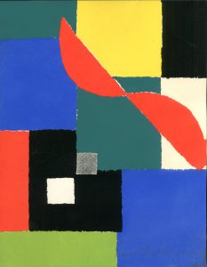 N° 222·DELAUNAY (Sonia). "Petite hélice rouge" (ca 1975). Pochoir en couleurs tiré sur papier vélin et …