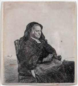 N° 78·REMBRANDT Harmensz. van Rijn (1606-1669).- La Mère de l'artiste assise à table, regardant vers la …